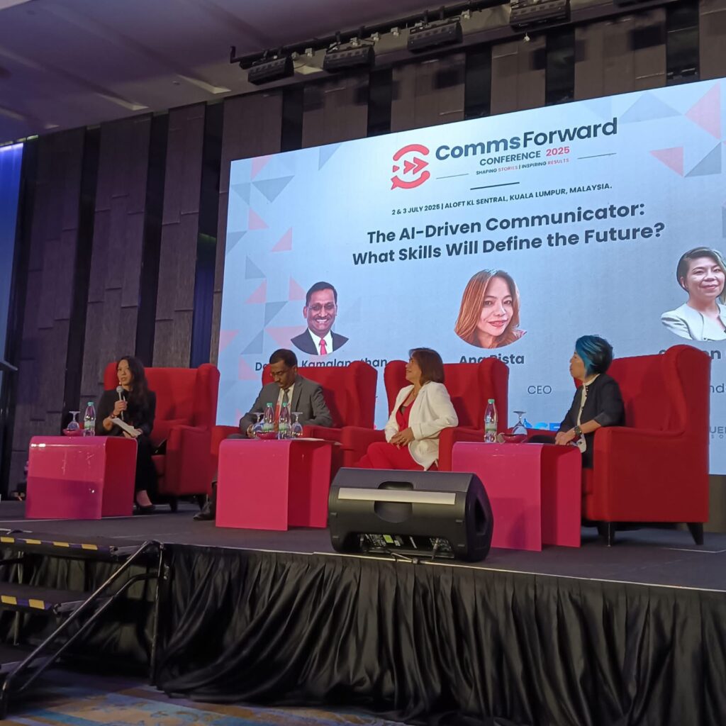 Following her talk at the CommsForward Conference, Pista joined the dynamic panel discussion, “The AI-Driven Communicator: What Skills Will Define the Future?” moderated by Ruzanna Muhammad (News Hub Asia), where she shared the stage with esteemed co-panelists YBhg. Datuk P. Kamalanathan (PRactitioners & Malaysian Qualification Agency) and Sharon Goh (Syuen Zens Resources).