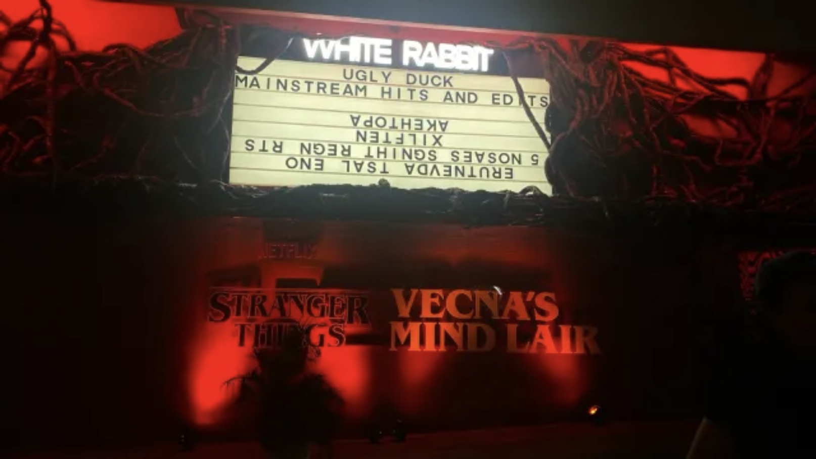 The event recreated iconic elements of the series — from the eerie atmosphere of the Hawkins woods to themed installations inspired by the Byers’ living room, the Creel House, the Starcourt Mall, and the Upside Down.